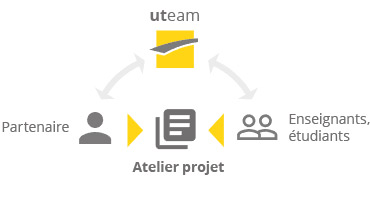 Dans le cadre de leur cursus universitaire, des étudiants de l’UTC sont amenés à travailler en groupe dans le cadre d’atelier projet. Ces ateliers font partie intégrante du parcours de formation. Ils ont pour objectif de permettre aux étudiants de mettre en application les savoirs et compétences acquis lors de précédents enseignements, mais également de développer des compétences propres au travail en équipe. Ces ateliers projet sont négociés en collaboration avec UTeam et la Direction Formation et Pédagogie.